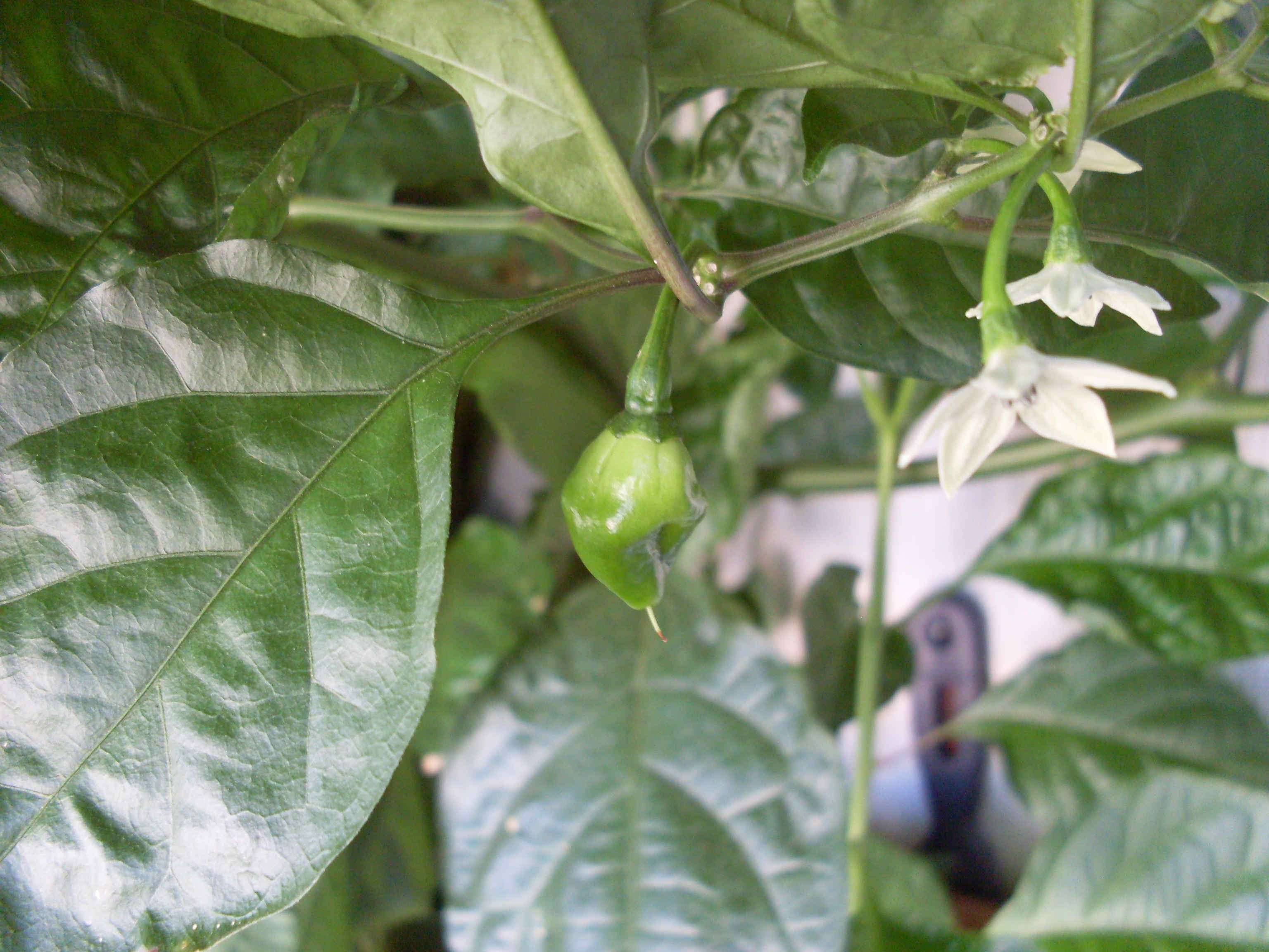 Растёт у меня перец "Огонёк" в земле, удабриваемый гидропонными удобрениями. Вот фото зелёных стручков.