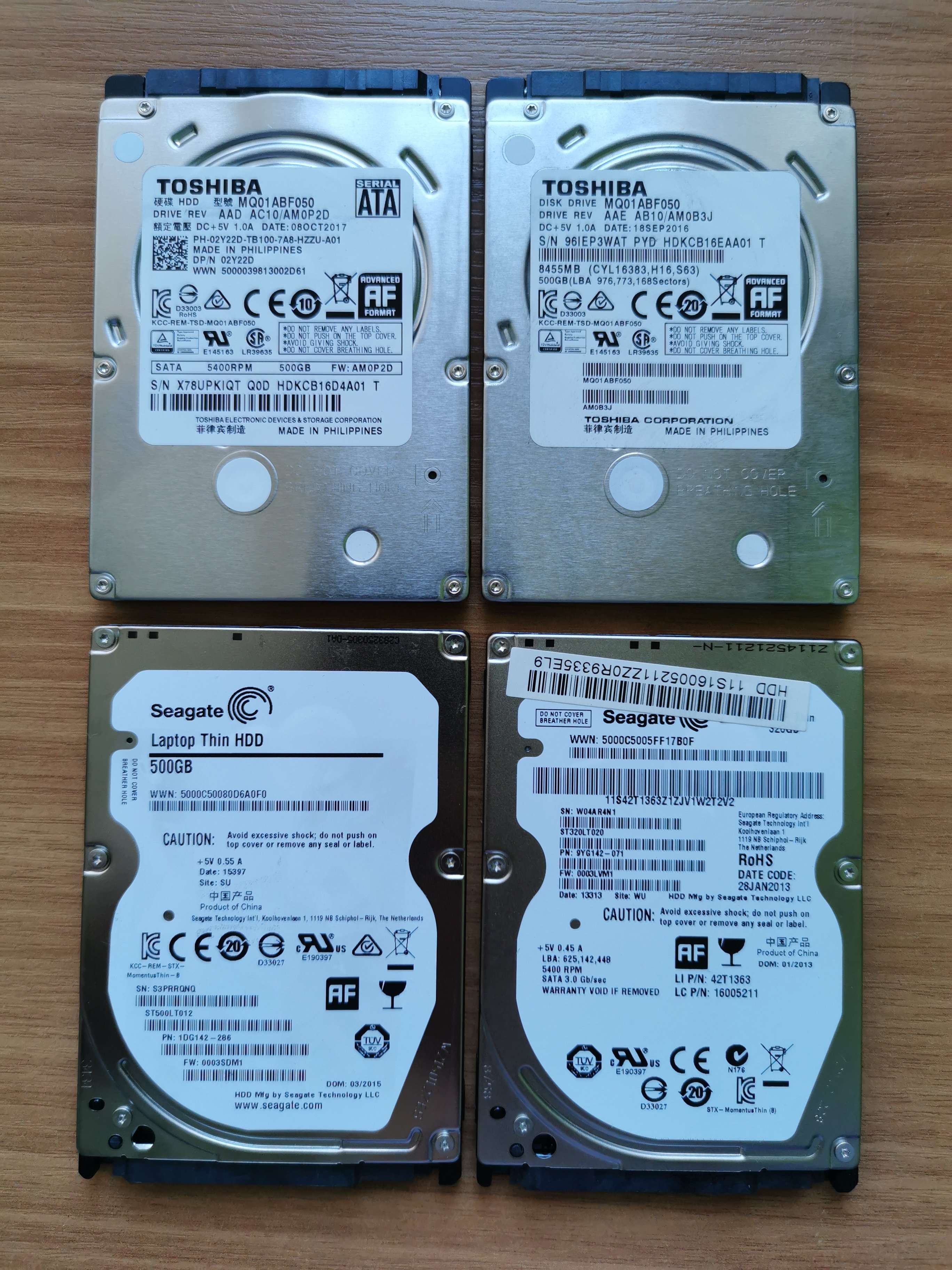 Продам 4 диска 2,5" - 3 диска по 500Гб, 1 диск 320 Гб. Бэдов и ремапов нет. Отдам все за 1000 р.