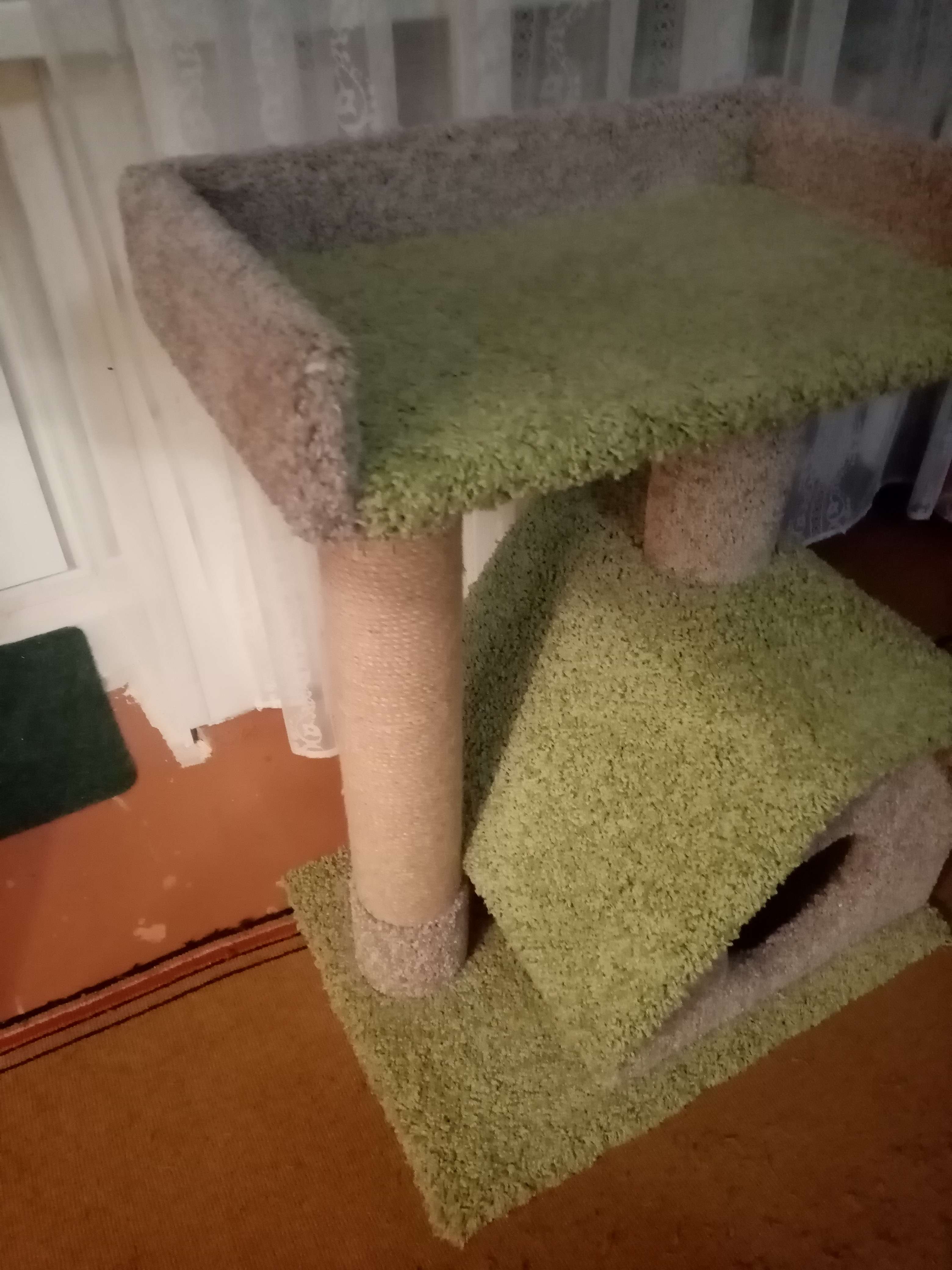 Домик для котят, котов и кошек. Домик с лежаком и когтеточкой(когтедралкой) Отличное состояние. Продаю так как ,котик уже подрос и не помещается на лежаке и в домик((( Сделан на совесть.