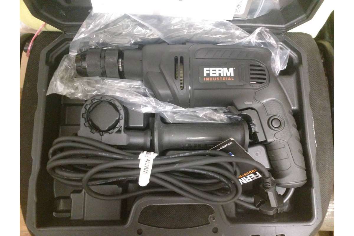 2) Ударная дрель FЕRМ РDМ1060Р. Ударная дрель, мощность 850 Вт, реверс, максимальный размер оснастки 13 мм, мягкий провод 3 метра, кейс. Полный комплект, абсолютно новая. Цена - 1600 рублей.