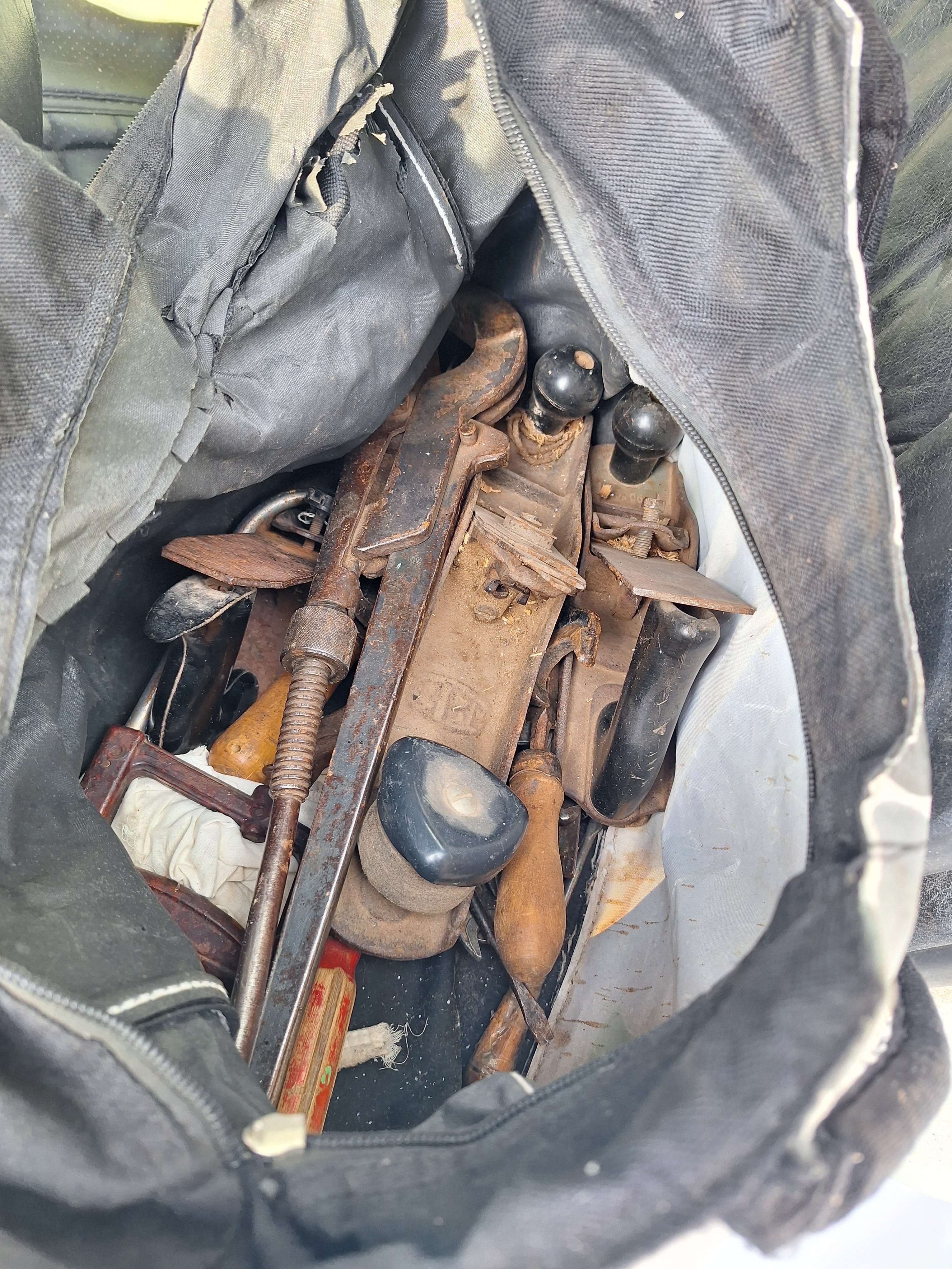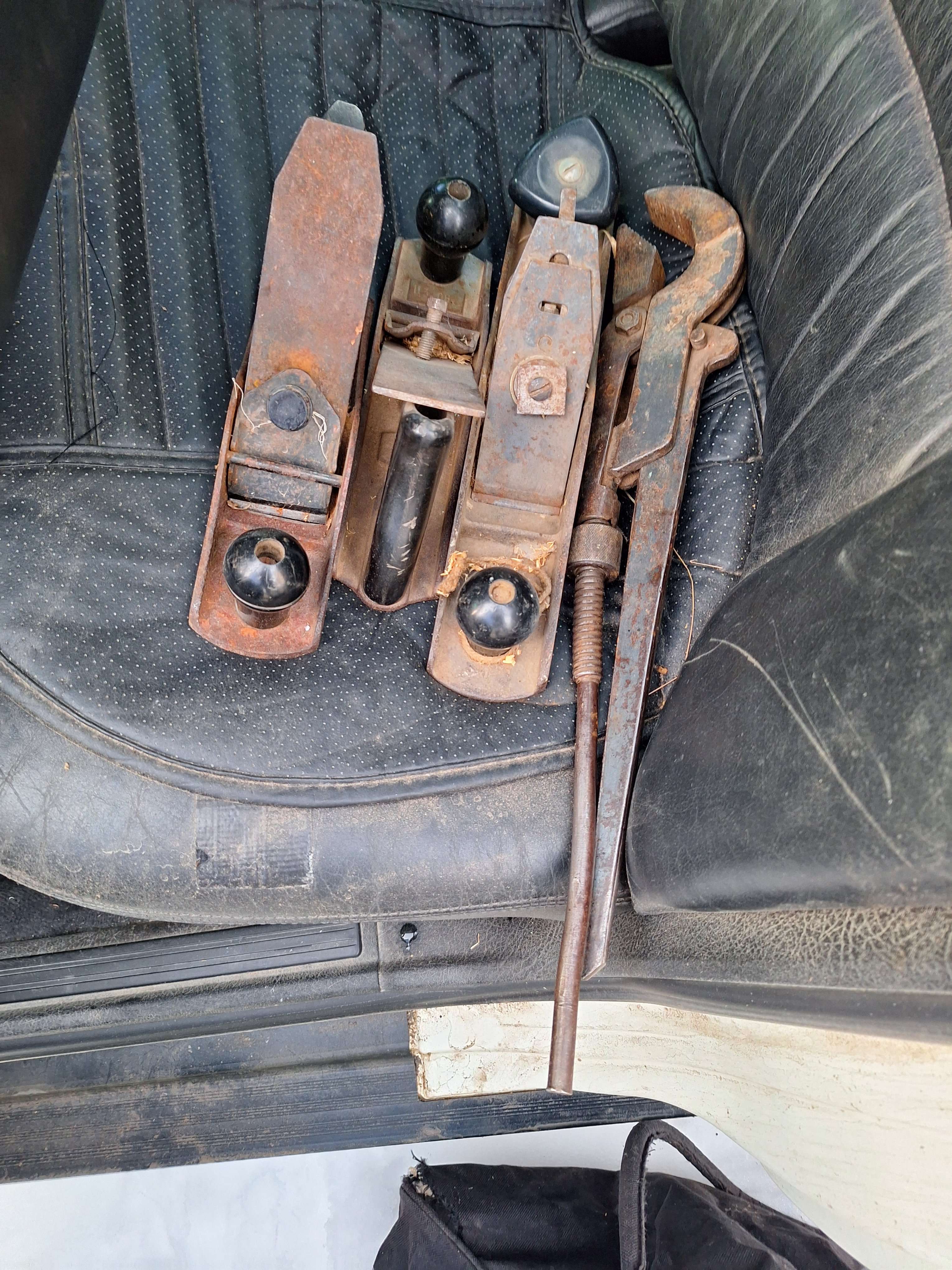 Так и лежат у меня железки (была тема). Тиски советские. Тяжеленные. Губки примерно 12 см. От 3 тыр. Электрорубанок. Массивный. 75 мм. От 1 тыр. Ну и наразвес: ручные рубанки, газовый ключ, гаечные ключи, торцевой с головками (набор). 7 Ветров.