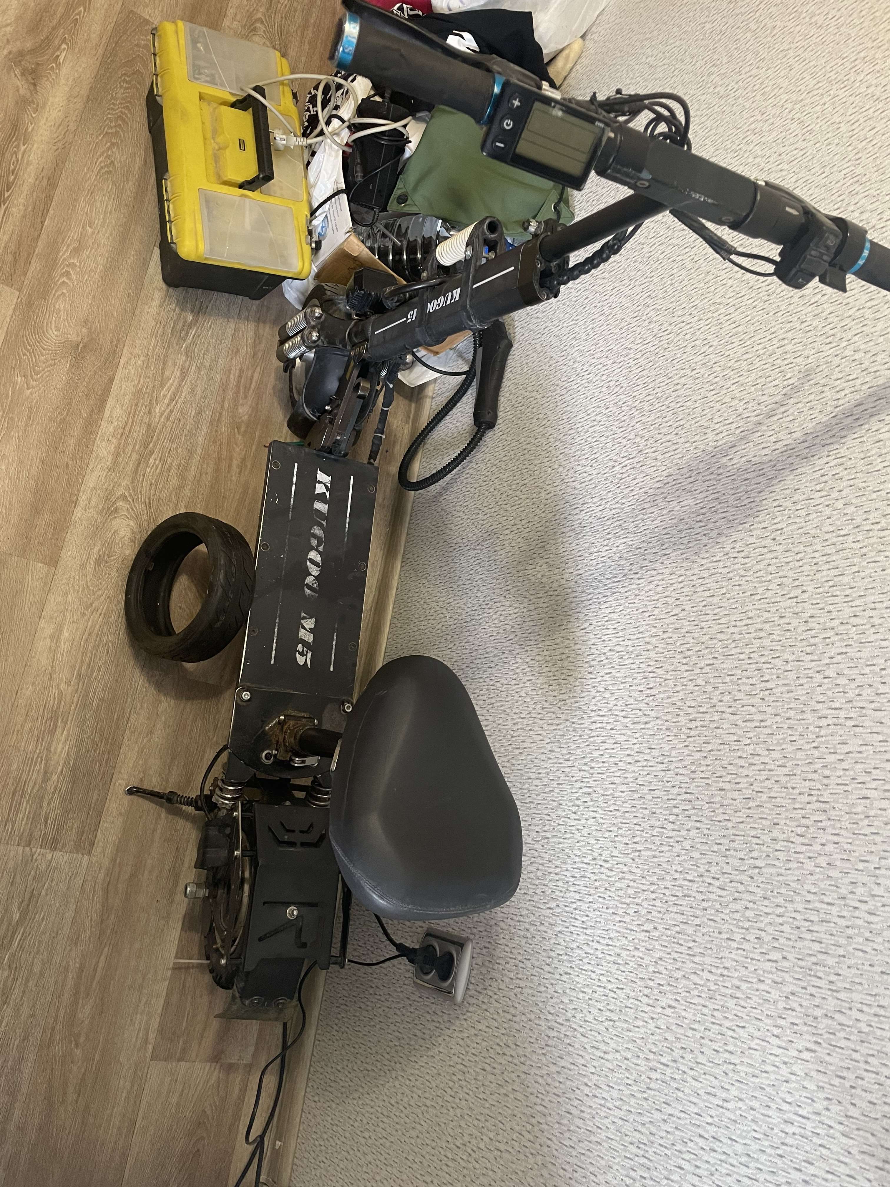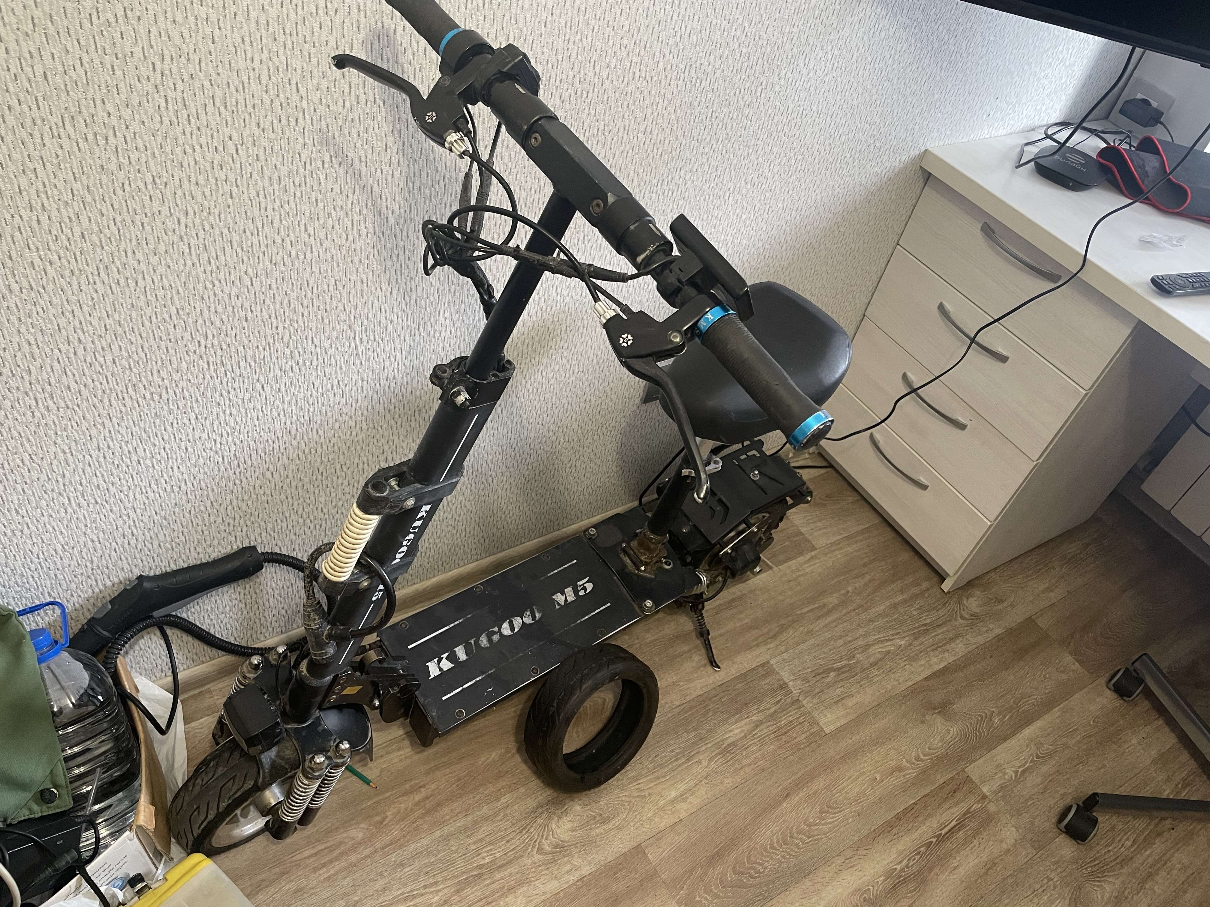 Продается самокат куго м5. Состояние на фото. Не буду описывать технические хар-ки они есть в интернете. В комплекте самокат, запасная покрышка, зарядка, 2 брелока. Лично я на нем ни разу не катался, лишь возил его в Вело34 на диагностику, там такой приговор (дословно): состояние аккумулятора 60-70% (остаток), нужна ревизия подшипника переднего колеса, тросиков и тд тормозов (у них все это стоит 5к.). Была с их слов замена контроллера батареи и что-то делалось с сигналкой, но все работает. Загерметизированно все норм. Фары/подсветка светят. В остальном вроде все хорошо. Цена для зимы и форума видится в 25к. Или выслушаю ваши предложения.