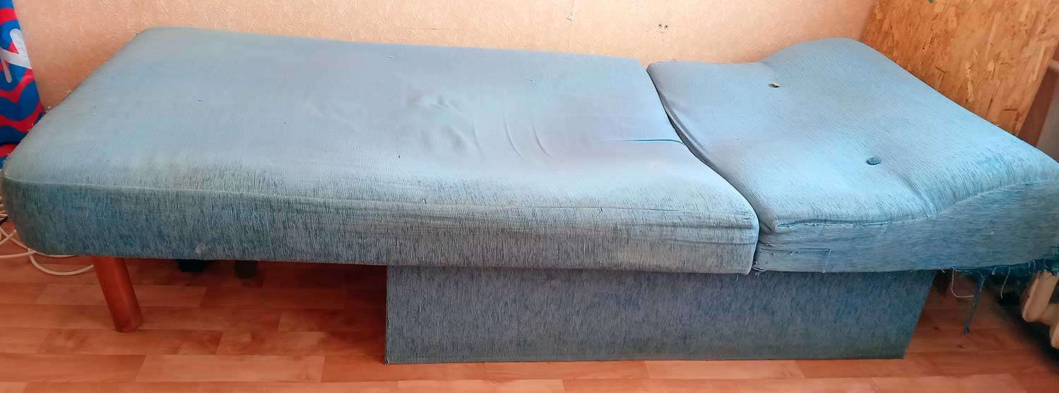 Здравствуйте. Отдам диван. Состояние унылое, но рабочее. Кошки-собаки, бомжи-сторожа к дивану не прикасались - диван всегда эксплуатировался в жилом помещении. Размеры в разобранном виде 200 х 85 см В собранном - 130 х 85 см Диван без инструментов разбирается-собирается на две части. Пять лет назад диван немного промок - обычная водопроводная вода протекла по полу, а ящик дивана стоит на полу без каких-либо ножек. Следы намокания на ящике остались, но плесени, запаха и прочих проявлений сырости - на диване нет. Актуально до следующих выходных (02 марта) потом вынесу на свалку. Забрать можно в Кировском районе (ул. Кирова, бывшая остановка "Оптика") - в будни после 18:30, в выходные - в любое светлое время суток.