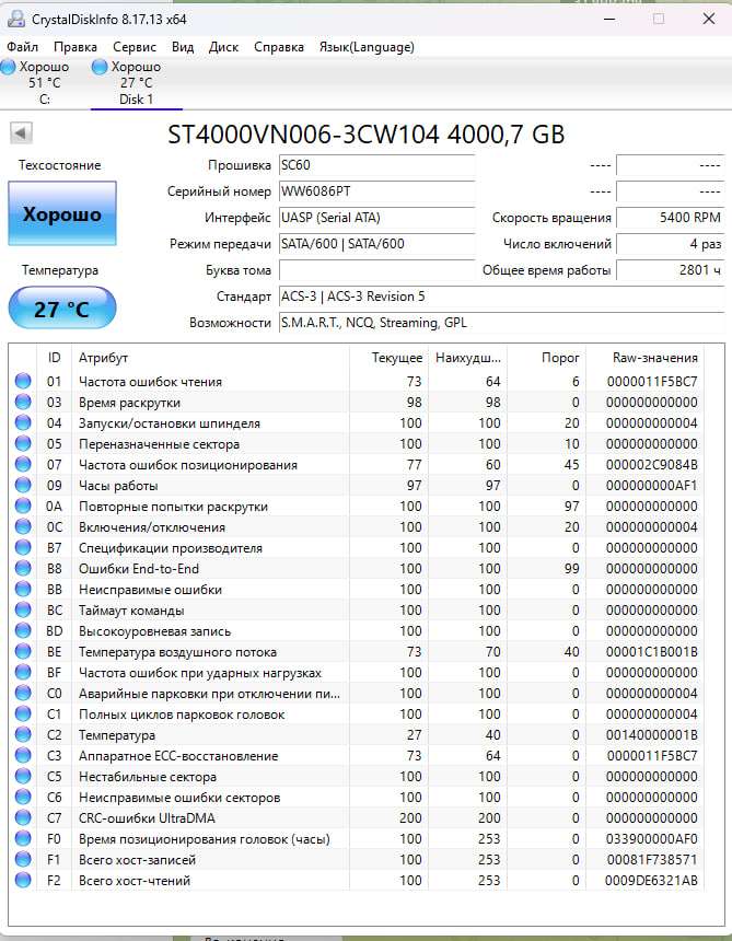 4 ТБ Жесткий диск Seagate 5400 IronWolf ST4000VN006 В хорошем состоянии, использовался мало. На гарантии до 14.08.2024. 6500руб.