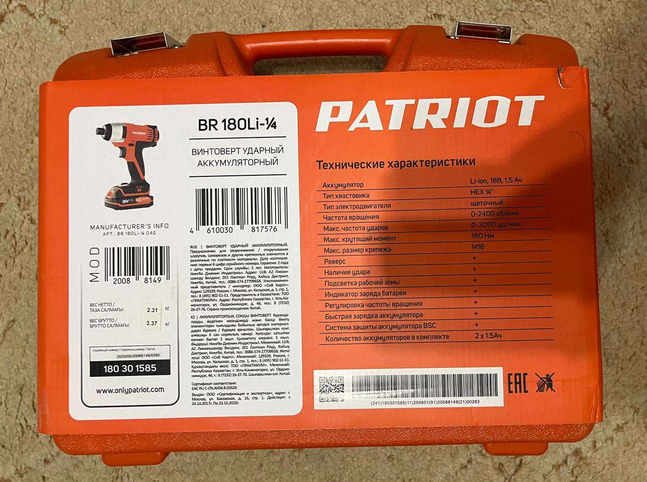 Продается винтоверт PATRIOT BR 180Li 1/4 UES (180301585). Новый, в использовании не был. По цене 6500 примерно.