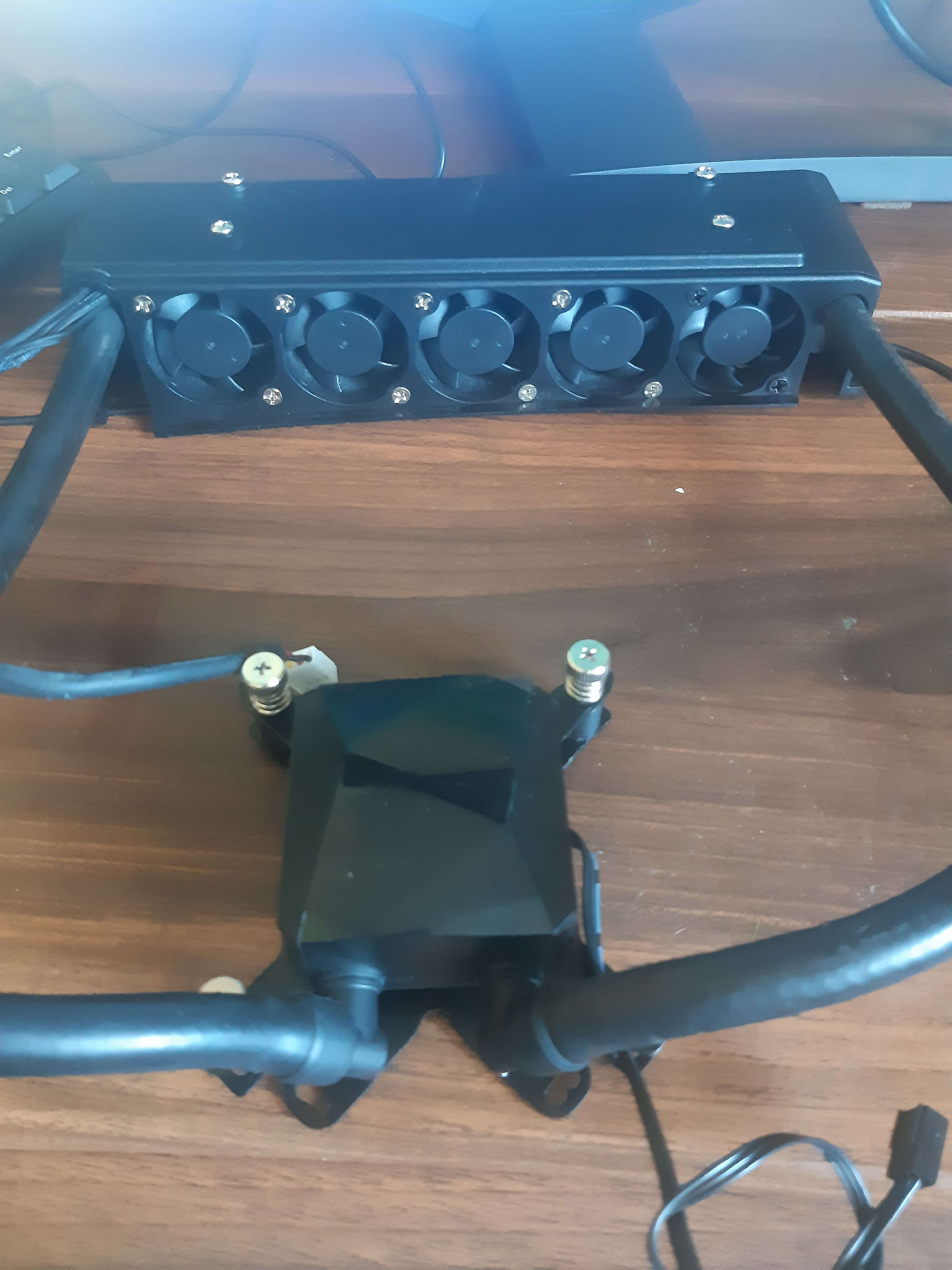 Родное встроенное водяное охлаждение достаточно шумное, отдам в комплекте, сейчас там стоит низкопрофильный кулер и прекрасно справляется с поставленной задачей.