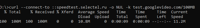 Проверял еще до описанного лайфхака с GoodbyeDPI, тогда скорость была приличная (не помню точно, сколько), сейчас без батника так с батником почему-то так: