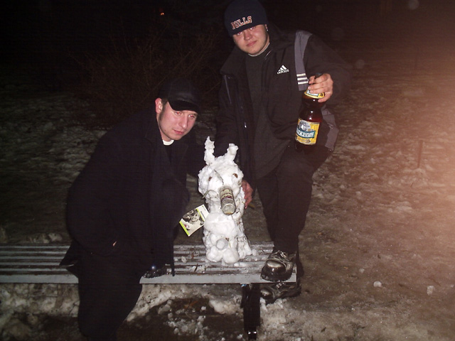 Снег-о-Вик А вот и первый снеговик...честно - он был не наш...но потом влился в нашу тусу и ...и ему разбили голову Фотку второго снеговика выкладывать???Не знаю пока.. 2 пурген - Думаешь стоит???Они ж не поймут...не оценят!!А мы вот повеселились..ну если чё на ящик те скину)))))))))))))