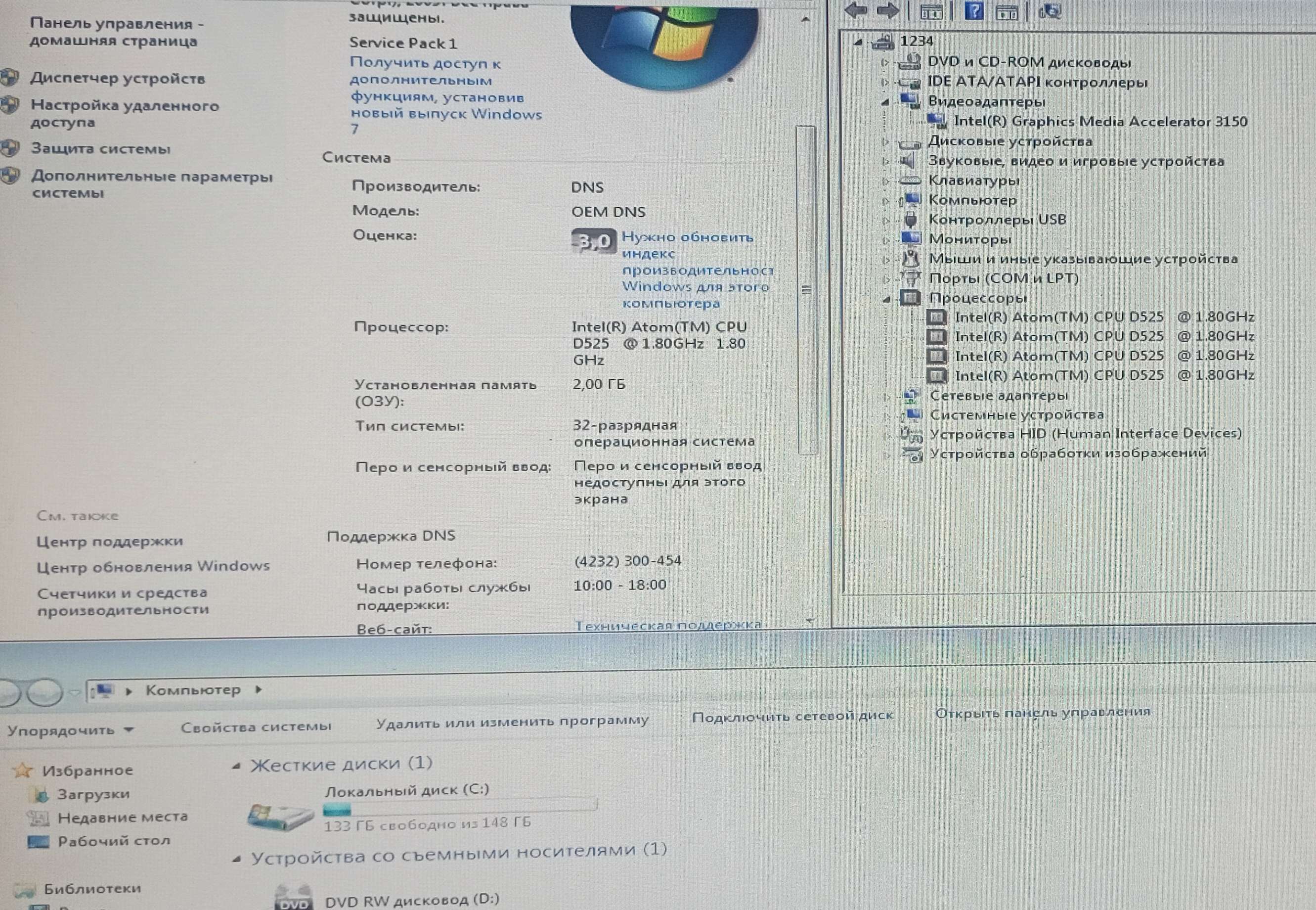 4-х ядерный. Жёсткий диск 150 гигов. Оперативка 2 гига. 19 дюймов экран. Видеокарта встроенная. Отдаю дёшево 2500 рублей. Если купить кронштейн можно вешать на стену. Установил windows 7 Dns. Пожалуйста. Они кстати четырёх ядерные системники были.