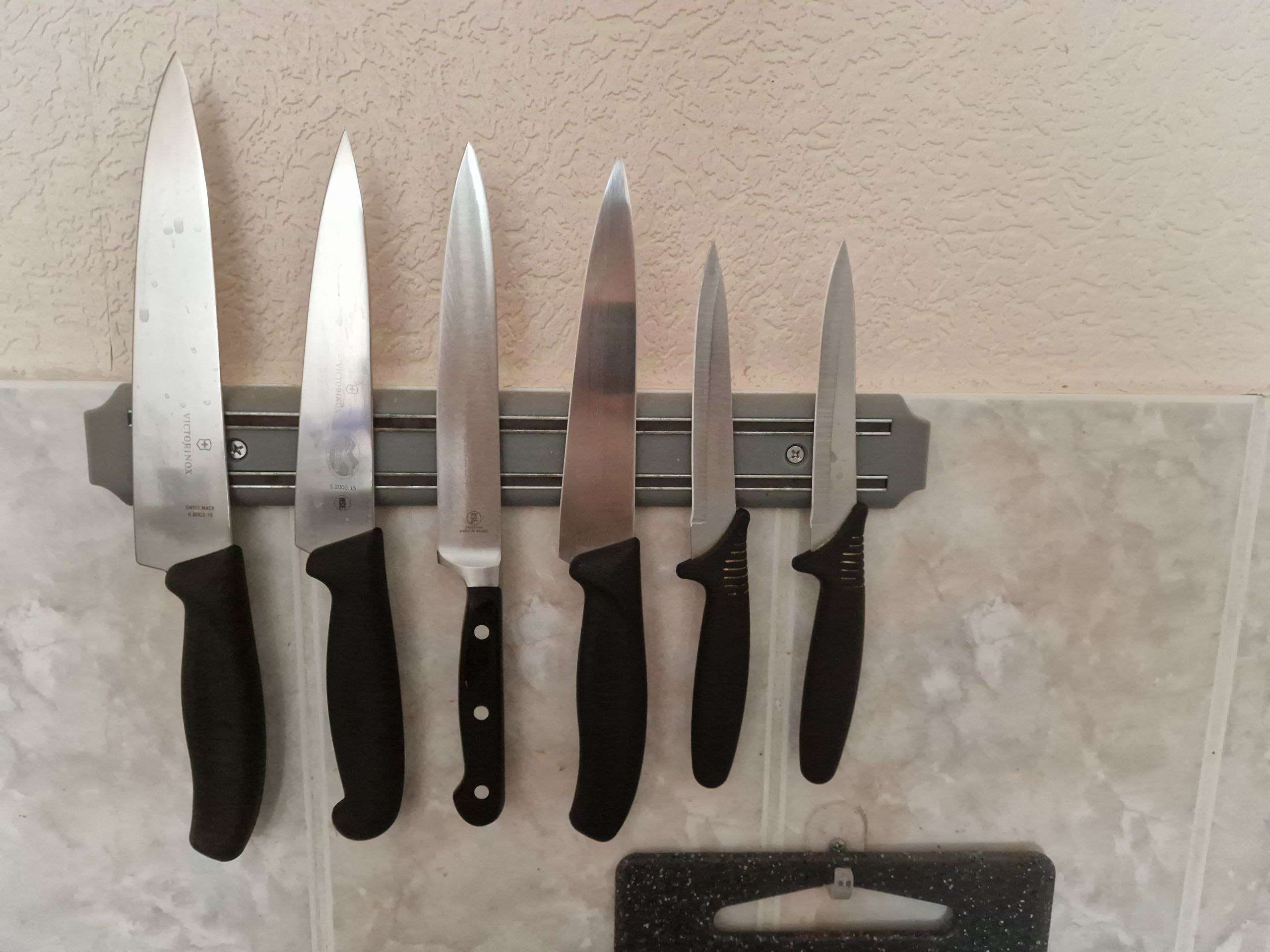первое: уболтал жену и купил магнитную планку. теперь ножи на кухне висят, как у @Афиноген, пока на стене (что жене и не нравится, на виду) потом перевешу в шкаф.