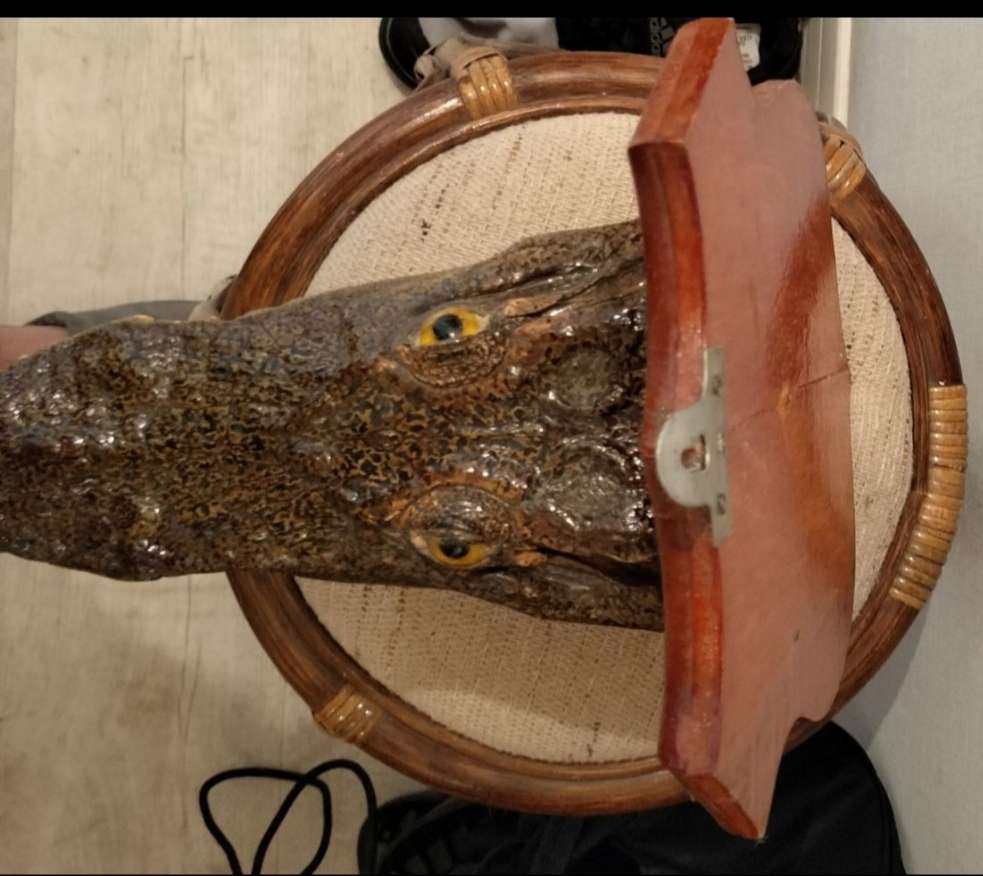 во приколебались то к глазам. Это крокодильи, но он в момент смерти был крайне удивлен самим фактом смерти. Потому зрачки и расширены. Тут бы еще разобраться не кожзам ли лаком покрывали? А то тайцы - они такие затейники...