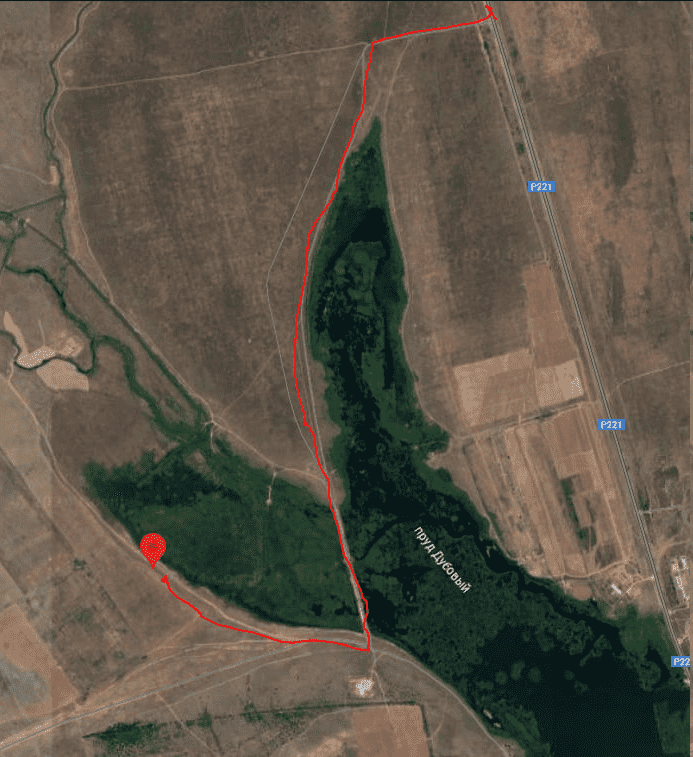 Проезжаем Большие Чапурники, сворачиваем направо на грунтовку, доезжаем до строений, опять уходим вправо и вдоль высоковольтной линии до арыка. После него сразу круто налево и по средней развилки доезжаем до поля. Оно зеленое, ориентир - беседки.