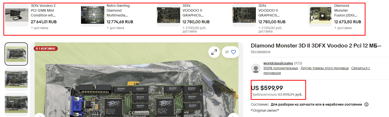 Ну я сам удивился, но факт. Винтаж, ибо! Есть же ценители ретро-ПК и топвиплухаре комплектухи тех времён. Или всякие 3dfx Monster 3D сколько стоят нынче. У меня был где-то не могу найти, ценность такая пропадает.