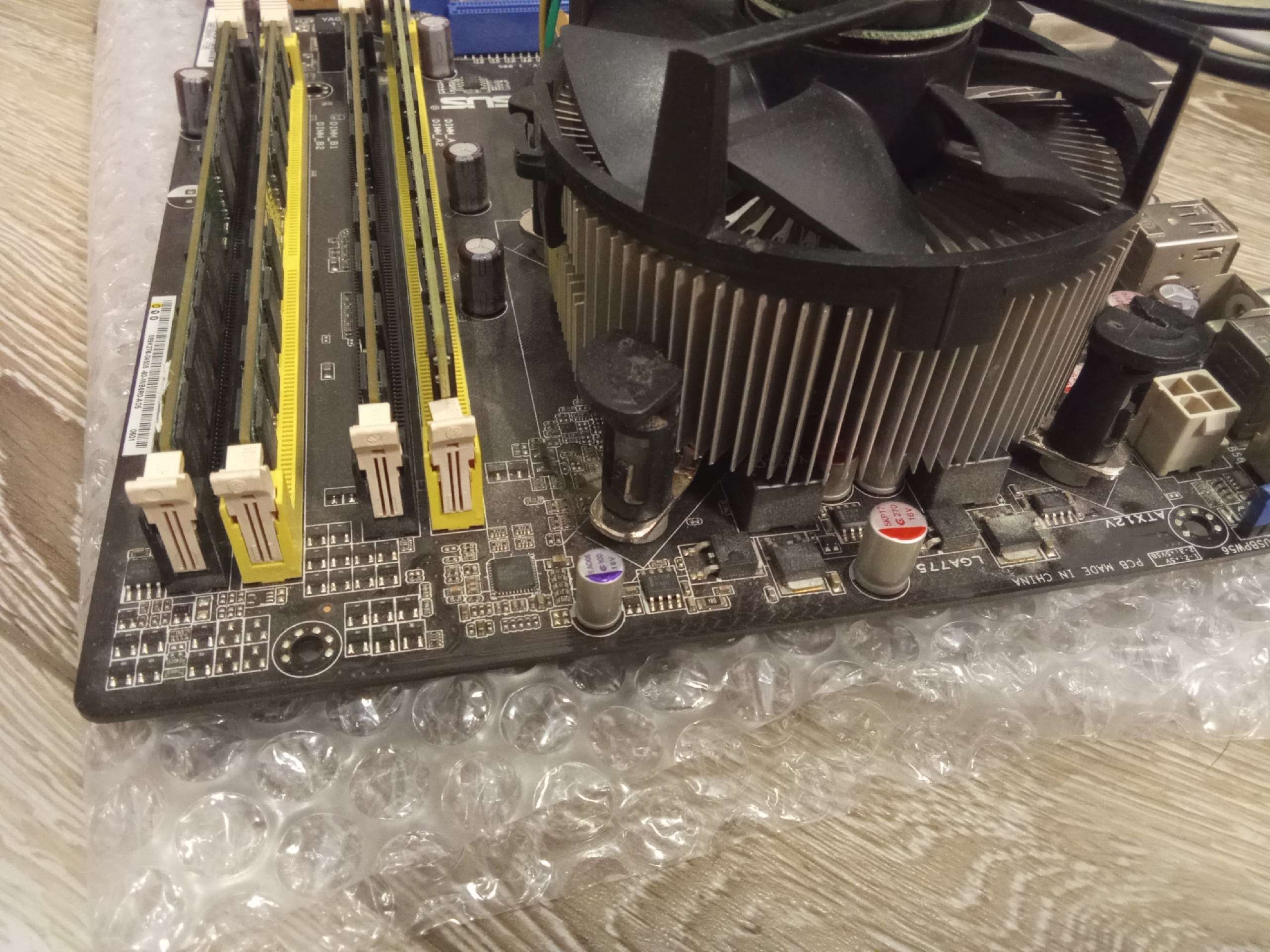 Выставляю на продажу винтажный комплект) Все показано на фото. Работает. Винду не ставил, порты ЮСБ работают. 4 ядра, 8гб оперы, кулер с медяхой, кулер самый мощный, боксовый. Надо поставить батарейку и намазать термопасту. Если у вас нет хорошей нет пасты намажу свою Zalman. Проц горячеватый, но кулер его вывезет. Батарейка где-то тоже валялась рабочая. Видюху поставил для проверки, могу тоже продать. Заглушки от мамки - нет, по цене комплект отдам недорого.