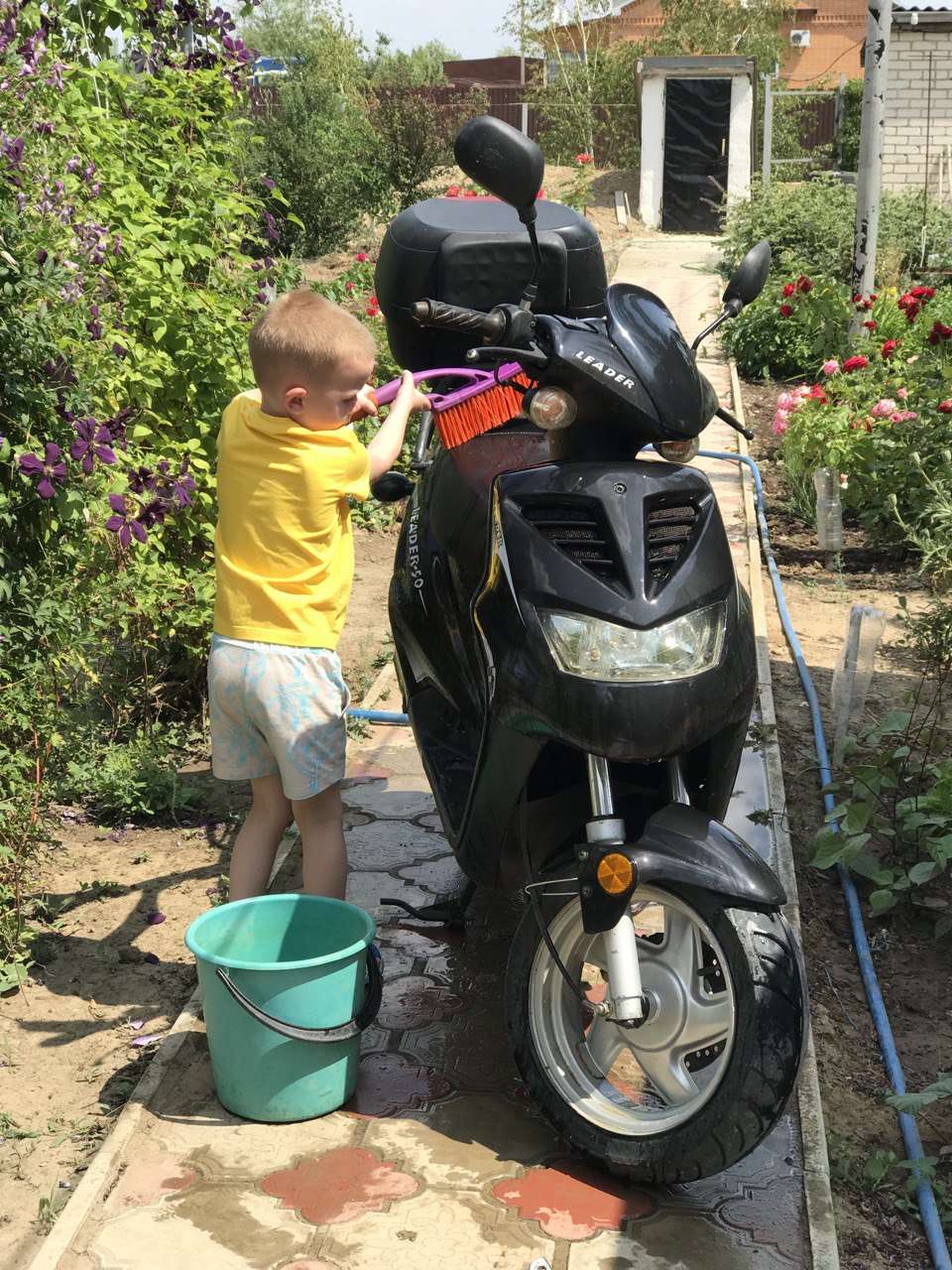 Хозяин скутер помыл, с нетерпением ждет езды))