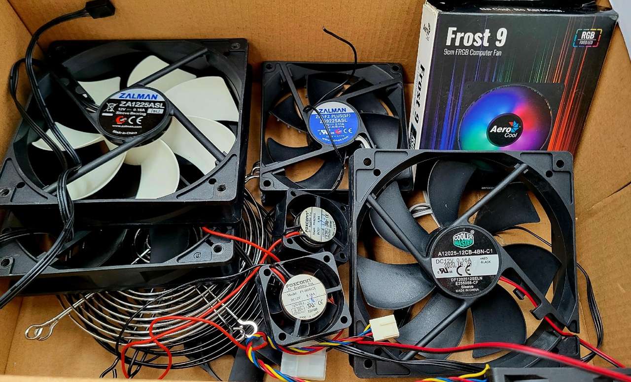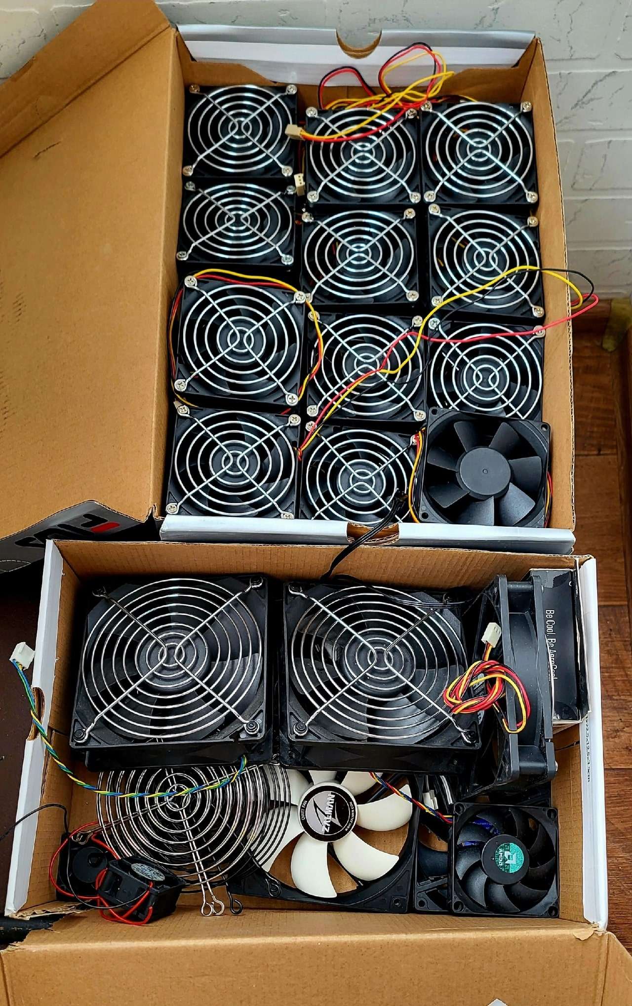 15 вертушек охлаждали 5шт 3080ti по 3шт на карту, оч удобно, но шумновато.