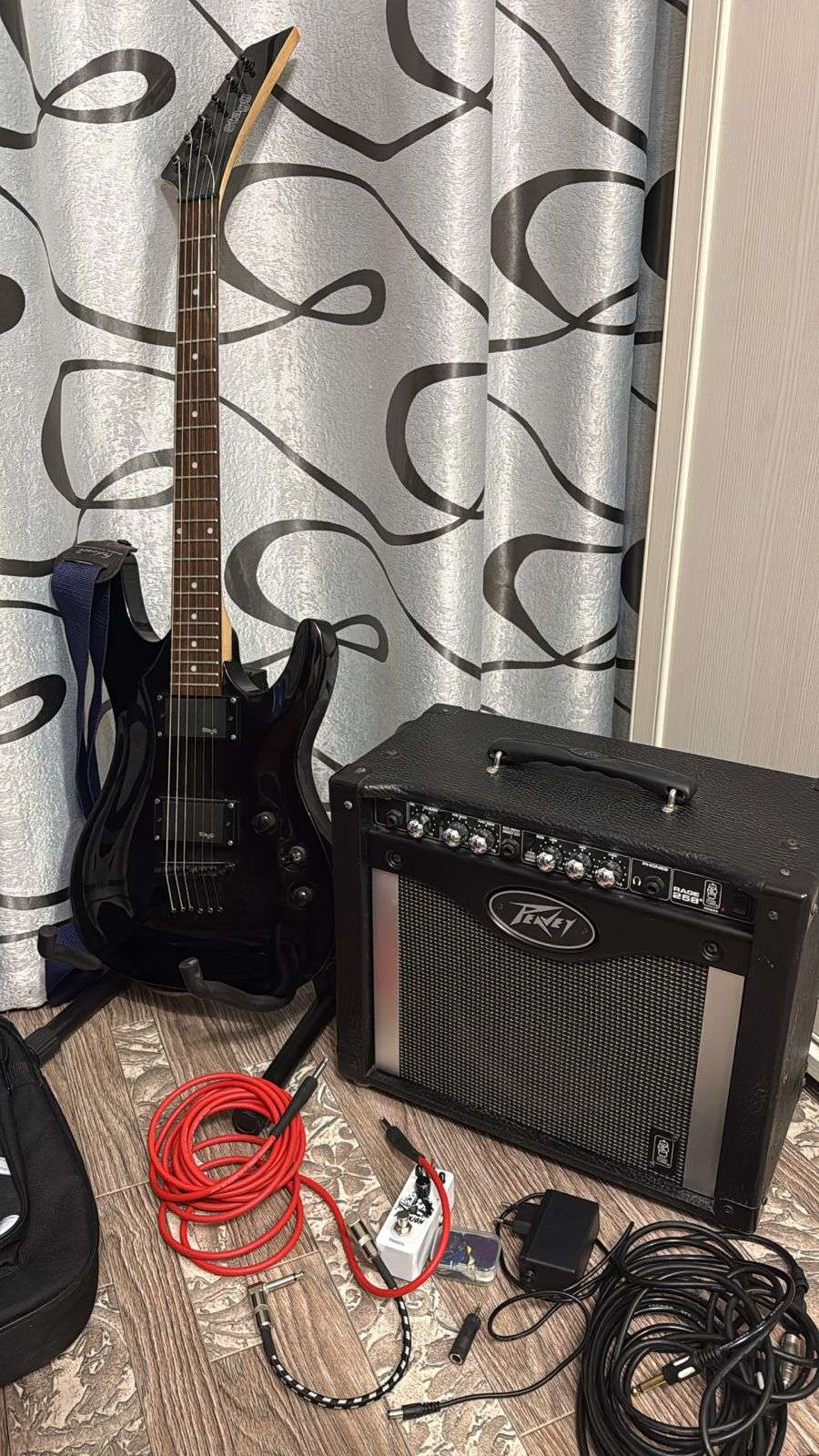 Собственно нет времени переучится с бас гитары. поэтому решил продать. Гитара Stagg Heavy. Судя по гугл их уже не делают и вообще редкая штука. Обслуживалась у мастера, не фонит, лады не цепляют и тд и тп. Комбик PEAVEY Rage 258 встроенный дистошн и тд Провод klotz и несколько обычных. Подставка для гитары. Педалька перегруза простая с озона. Чехол для гитары новый, и кучка медиаторов.