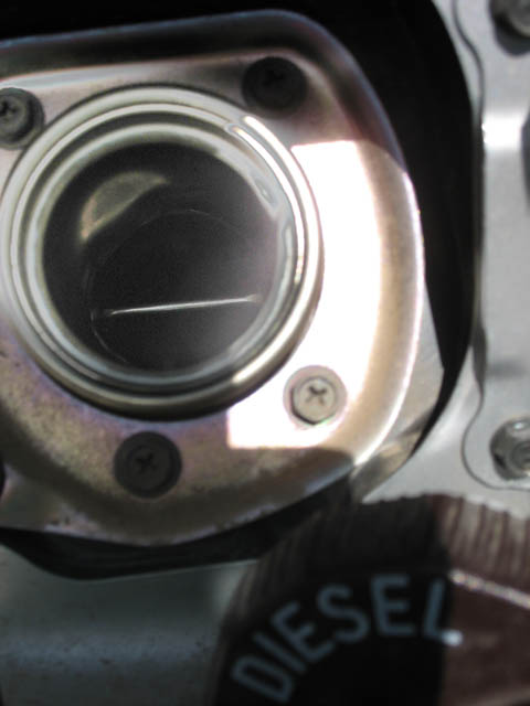 У меня вот такая заливная горловина: Она как бы разделена металлической перегородкой пополам. Если пистолет узкий, то пролазит в нижнюю часть, если широкий, то упирается в эту перегородку, но солярка все равно течет.