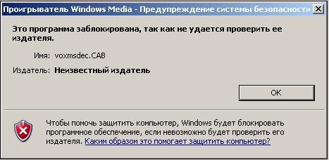 сгинь сдохни Когда качаешь кодек, надо установить в свойствах обозревателя>Безопасность.... уровень безопасности самый низкий..... или просто установить галочку - Загрузка не подписанных элементов(ActiveX) !