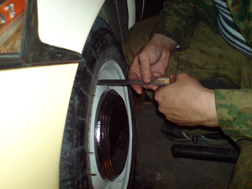 Прямая линия, в плоскости переднего колеса, должна иметь (определённую для каждой модели) привязку к заднему колесу. Способ реально работает, по части износа резины у "копейки" . При соблюдении такой привязки (22 мм) внештатного износа не наблюдается. Стоит ли платить кому-то деньги?