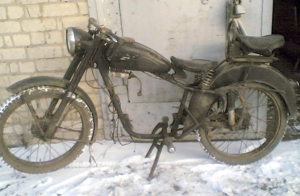 Кто может помочь по фотографии определить марку и модель мотоцикла. Предположительно это к-125 1959 г выпуска, но в то время к-125 уже заменили другой моделью, сравнение с фотками по архивом завода изготовителя результатов не дали.