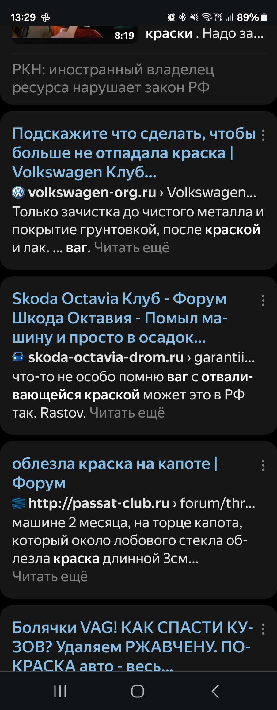 Ты читать умеешь? Я нигде не писал, что ржавеет ваг, а что краска отпадает от кузова... @Burster, https://dzen.ru/video/watch/60c3c07a689e784a0391e11a Я не говорю что на свежих вагах такая проблема есть, скорее всего и устранили, но была она 100% на авто 10-16гг что были у моих товарищей и они просто пожимали плечами, что ну есть такой косяк у ваг...