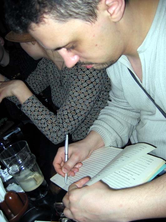 Ладно доставайте свои деревянные кто сколько может. Ну не кидайте, не кидайте, собирай потом за вами! На чай, пожалуйста в отдельную стопку! Ну и мне, конешна, за то что я все это безобразие фоткаю. Эээээ, Кувшинка , куда руки тянешь. Это бармену на Запорожец!