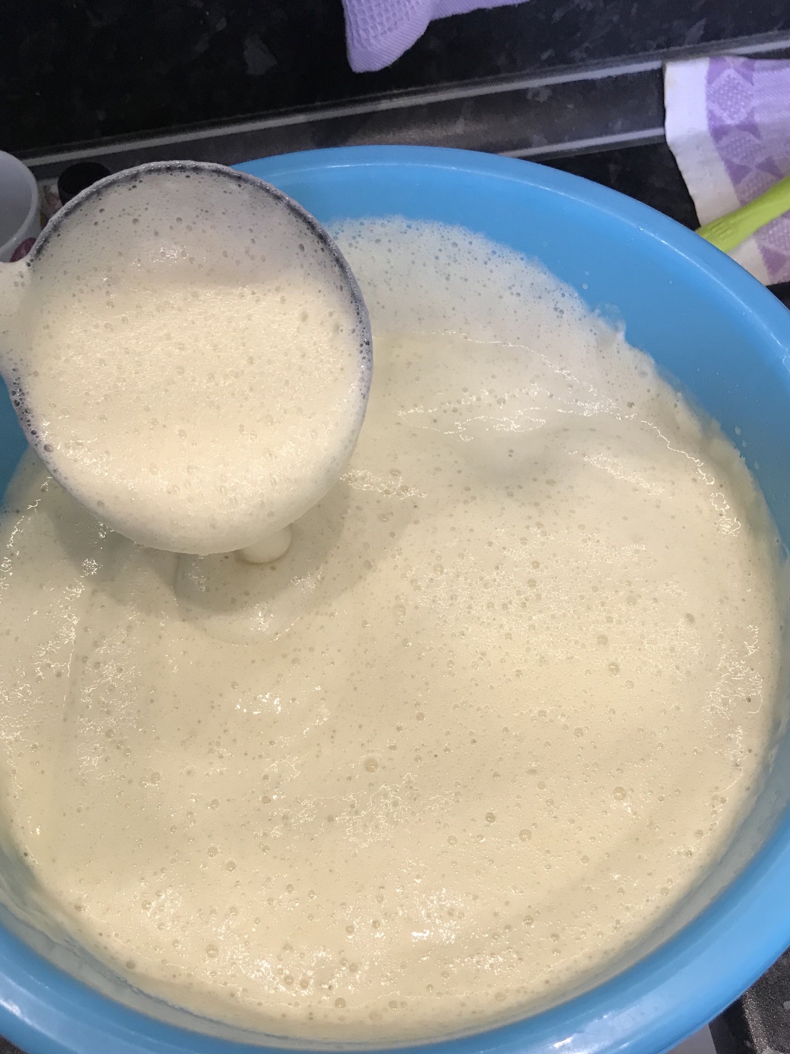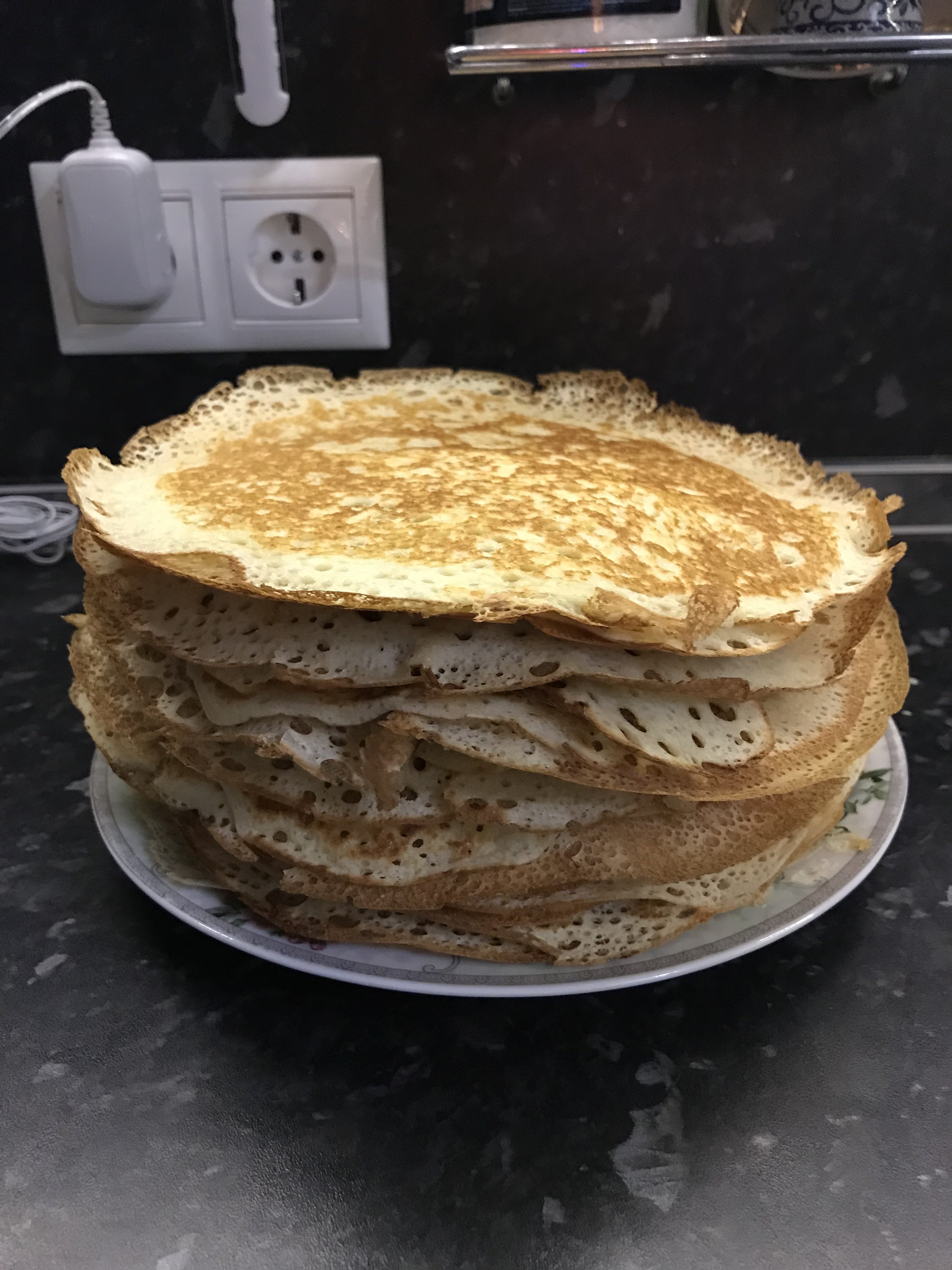 Тесто готово, осталось дождаться возможности испечь)) Как выше было сказано, самое вкусное в блинах это дырки))