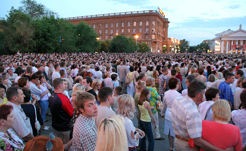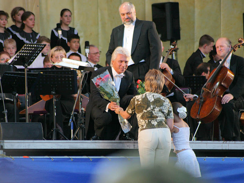 На концерт пришли не только приглашенные лица, но и множество почитателей Хворостовского, заполонивших площадь