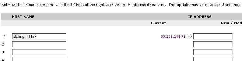 ууу. такого еще не видел с чего ей самой то появляться :-/ А туда Вы какие NS-записи добавили??? Nslookup говорит вообще что сервер ns1.domainpeople не возвращает никаких записей для Вашего домена :-/ И master.stalingrad.biz у меня например по-прежнему не пингуется. colorprint добавил [date]1124538097[/date]: а по http://www.stalingrad.biz открывается второй комп в моей сетке локальной LOL потому что он опять на 192.168.0.2 идет