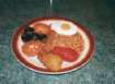 Ежели на работе, то завтрак простой: чай с молоком и парочка тостов. По субботам плотный жареный завтрак: 1 сосиска, 2 бекона, несколько грибочков, горячая фасоль в томатном соусе, 2 яйца с мягким желтком и гренка! И пару кружек чая с молоком! Ямми!!! По воскресениям лучше не завтракать, ибо ужин очень ранний - около 1:00. baby-girl добавил [date]1121592680[/date]: English breakfast!
