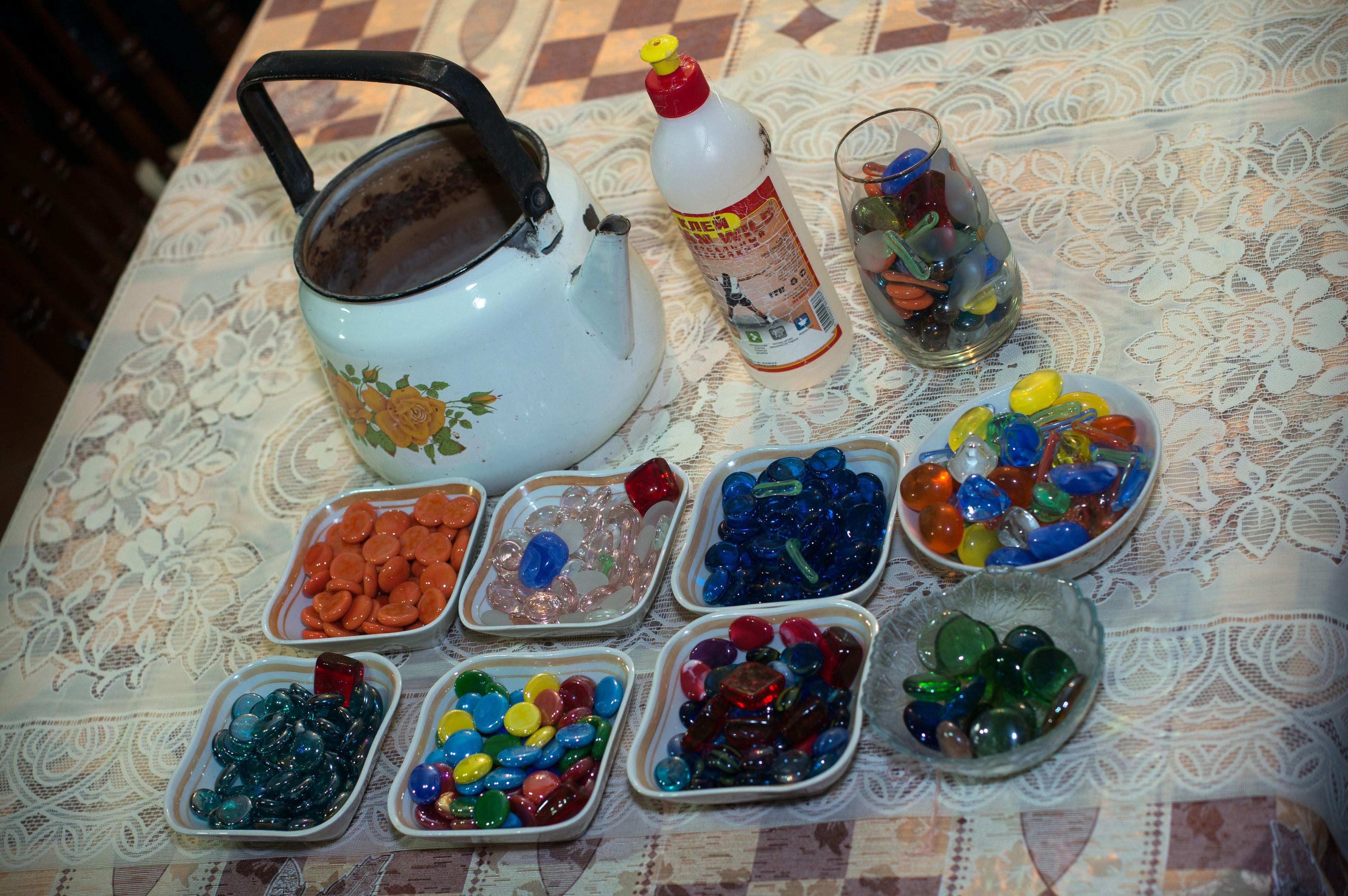 Вот она делает зимними долгими вечерами из горшков и из чайников..