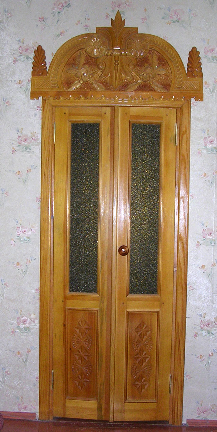 дверь, конечно, делал муж. а резьба моя.всё как в анекдоте: Клава, как тебе удалось освоить нашу чисто мужскую плотницкую профессию? -Ой, можно подумать, вы гвозди х"эм заколачиваете. изв. за лексикон