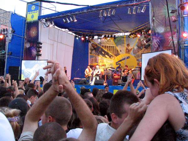 Итак, представляю вниманию общественности фрагмент песни "Наш дом". Сразу предупреждаю, что качество картинки не очень, так как старался максимально сжать видеоролик. Получилось правда, только до 5 Мб. Да и тот факт, что я находился в самой гуще толпы, не мог не сказать на стабильности изображения...Вообщем, кто хочет, даю ссылку. (Чтобы скачать файл, нужно кликнуть правой клавишей мыши на ссылке "Скачать файл" и выбрать из меню пункт "Сохранить обьект как")