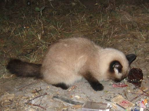 Странно, на мусорках пасутся только вполне сибирские бомжи, и вот ни разу сиамцев не видел... ;)