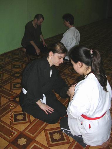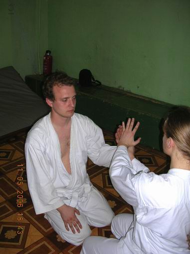 Ммм...по-моему термин "понимают"-это....ну....чегой-то не то.Скорее как пытаются понять.В смысле с какого боку.От мне жутко интересно, что новичок, типа меня, тока еще и о разнице в типах мышления востока-запада и проч. ничего не знающий думает в начале и конце тренеровки?о чем они молчат? Мдя......от я приблизительно об этом вчера думала.Тока, понятное дело, с другой стороны.....со стороны....ээээ...короче, когда на тебе пыталась чего-то сотворить, ну хоть чего-нибудь, а ты меня перед Sempai еще так развернул, чоб ему все мои мучения видны были. Ну и что мне делать?А?Я великолепно врубаюсь, что дергать каждый раз Sempai, или кого-нить из стариков, конежно можно попробовать, только это затормозит(ну, по крайней мере, у нас в сфере образования так) совершенствование тех, кто чего-то достиг. Я так один язык учила.Новые пришли-все на базу-алфавит и пр.и так 3 раза(за 2,5 года).я бросила в конце концов(ну, там я была в группе "стариков"). Я сейчас приблизительно в том же положении, что и Sempai - придет народ минут через 15-20, мне его надо научить мозгами пользоваться, а у них уровень настолько разный.....правда им еще и нафик это все не надо.