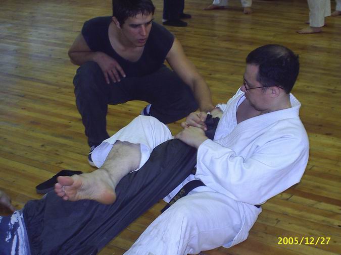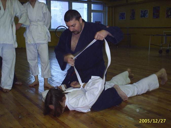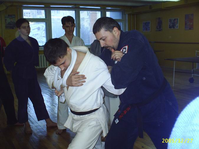 Zavulon, Ну уж коль на то пошло, то обладателя черного ремня. Просто Миша снял пояс с кимоно для работы нава дзютсу..А чтобы кимоно не распахивалось поверх надел брючный ремень. На семинаре было только два обладателя черных поясов