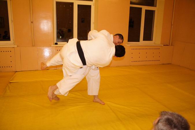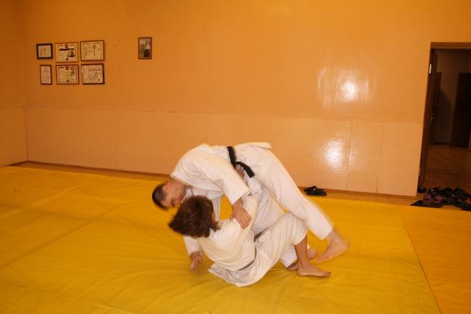 Пришёл в четверг посмотреть на занятия, людей довольно таки много - человек 20 (примерно). Разминка далась тяжело - лет 5 не бегал Когда подошло время самих приёмов я уже высунув язык валялся на полу На счёт эффективности болевых захватов этично промолчу, но руку или кисть вывихнуть могут!!! Время занятий пролетело как-то неожиданно быстро, особенно понравилось внимание сенсея ко всем ученикам. Хотел прийти в субботу, но ... ходить не мог (ноги отваливались), так что с нуля тяжеловато будет начинать.