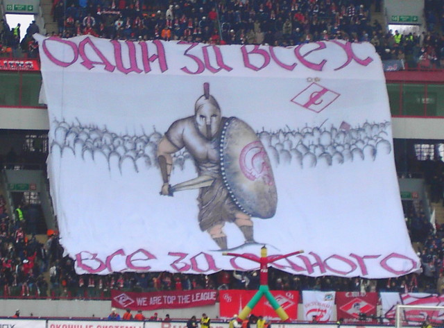 Только со стадио - ажиотаж вокруг матча велик, но организованно все в рамках приличий. Менты корректные, прошел на сектор довольно быстро. (а то некоторые здесь понакупят себе абонементов и думают что им все можно). Довелось мне сидеть на секторе примыкающем к нашему фанатскому северу - все на оч высоком уровне, листочки и флаги на сиденьях для пефоманса, заводилы с мегафонами да и сами люди, тоже..на высоком уровне, пели все абсолютно, причем песен очень много интересных и мастерски исполненных. Просто орать Спартак уже как-то не гламурно. А вот если говорить о визуальной составлющей зрелишности то здесь локо чуть переплюнул, у них и флагов больше, и баннеров плюс всякий нестандарт, типа красно-зеленых полосок на весь сектор. Но слышно их конечно не было - сатдион был на 90% красно-белым. Еще из впечатлений как после фаер шоу поля с нашего сектора вообще минуты три не было видно, ориентировались на звук. По матчу - все заслуженно, но пропускать конечно было не обязательно