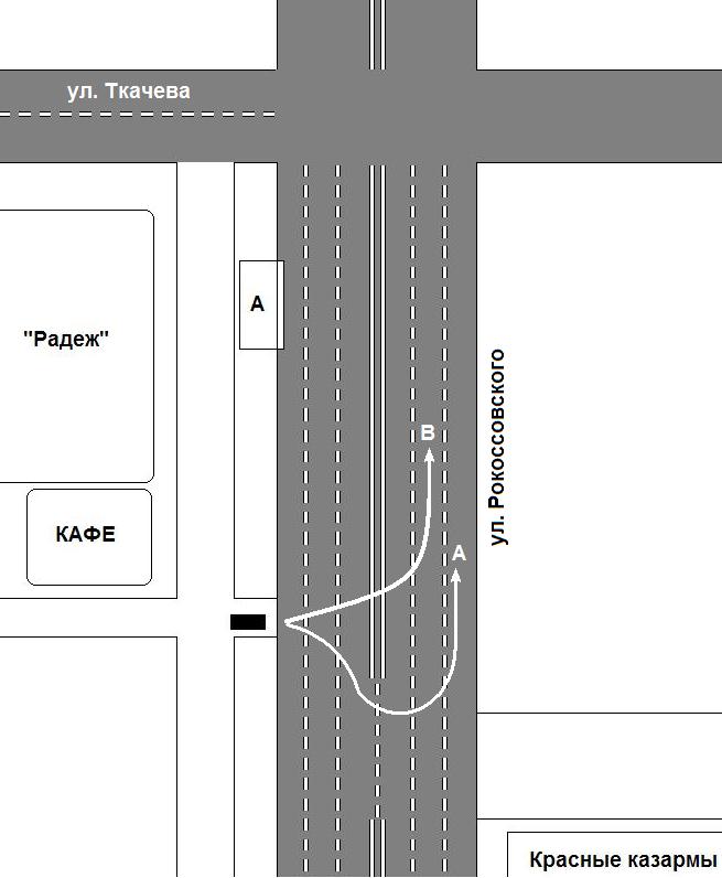 Сегодня выезжал утром на ул. Рокоссовского по стрелке "В"(см. рисунок), дождавшись, когда машин не было. Ну спешил, сам знаю, что нарушил. Но вопрос - что? Еду дальше в сторону Белого Аиста, перед перекрестком с Двинской меня догоняет машина ДПС и радостно машет палочкой. Останавливаюсь. "Выезд на встречку!" Едрить-колотить, где? Изымают у меня права, выписывают времянку, протокол, все как пологается. В протоколе просто пишут: "Водитель такой-то управляя тем-то, ВЫЕХАЛ НА СТОРОНУ ВСТРЕЧНОГО ДВИЖЕНИЯ С ПЕРЕСЕЧЕНИЕМ СПЛОШНОЙ ЛИНИИ РАЗМЕТКИ, чем нарушил п.п. 9.2. ПДД" Нормально? Ни обстоятельств выезда, ни места. Еще вписал в свидетели своего напарника. На мои замечания, что, мол я двигался по траектории "В" внимания никто не обратил. Я написал "с протоколом не согласен, на сторону встречного движения не выезжал, пересек ул. Рокоссовского по прерывистой линии. При рассмотрении дела требую присутствия адвоката." Вот такие дела. Права-то я уже забрал, дело не в этом. Предлагаю проанализировать ситуацию, и решить, была ли здесь 12.15 ч3??? Я не говорю, что не нарушал, но я думаю что тут имела место 12.16 "все другие нарушения требований знаков и разметки", 50р. Как думаете, что бы было на суде? Обращаю внимание - гиббоны в момент моего разворота были метрах в 150ти, на пешеходним переходе возле "Орбиты" горел красный, и догнали они меня только на Двинской. Следовательно, рассмотреть траекторию моего разворота они не могли, хоть и настаивают на траектории "А". У меня может появиться свидетель, которого я высадил перед разворотом (и он все видел). Как думаете?