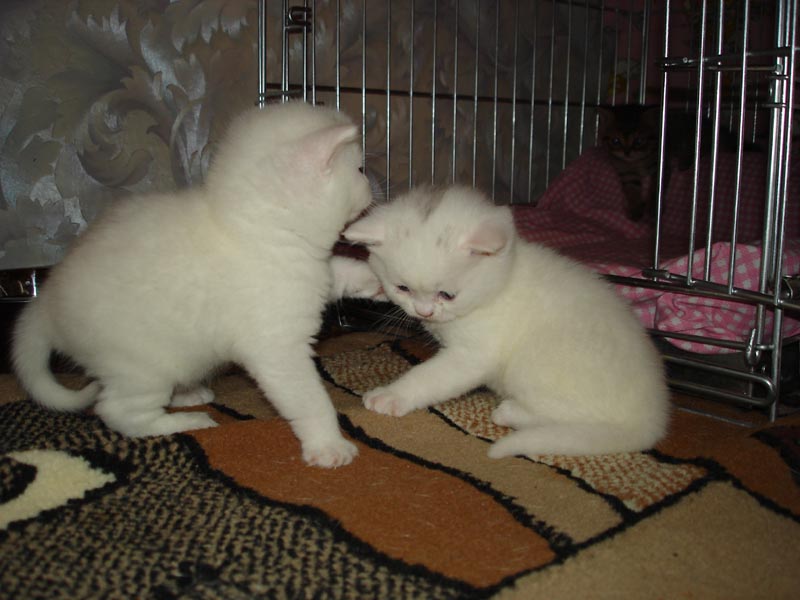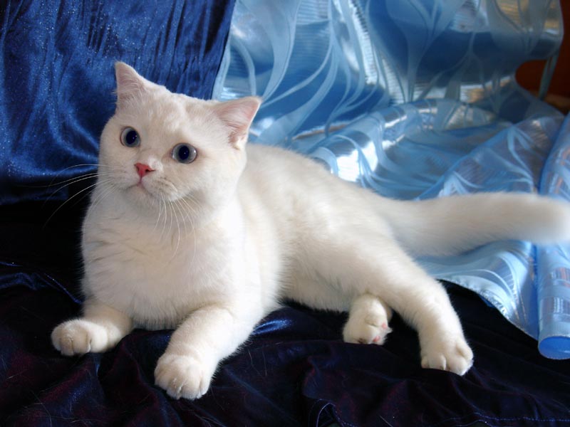 Правильно говорят. А еще тут тонкий вопрос. У скотишей, имеющих гены фолдов, в месяц важно не ошибиться в ушах. У нас так и произошло. Кошка записана как SFS (Scottish Fold Shorthair), она и была фолдом, но потом уши встали и мы лишились CAC... Обидно, даже судьи расстроились - все признаки в идеале... Если бы она была записана страйтом - была бы чемпионом 100%. Сказали, ну что ж, рожайте чемпионов! a-res, а что у тебя за кот? Раскажи, мож и договоримся! В@дим, спасибо, белые голубоглазые - это редкость. Родоначальница Скотишей была именно такой.