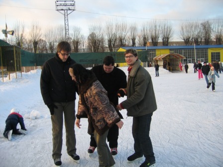 Офигительно сходили. Не все ж бухать! Покатались ка конках, попили кто глинтвейна, кто чаю, кто горячего шоколада. Приятных впечалений осталось - масса. Stepmother фоток да видеофрагментов понаделала. Думаю выложит еще. Единственное, я вот шину проколол как только подъехал, прямо на парковке у катка. Эти, конечно, мое настроение было несколько омрачено, но ничего, дело, как говорится, житейское. Сижу щас на работе, а в соседнем шиноремонте - моя шина клеется Надеюсь, что 27го мы тоже весело время проведём