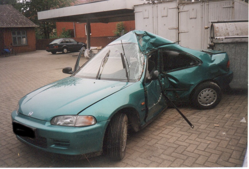 А вот фотка той хонды, про которую я писал, когда говорил про "мягкость" японских машин. Причём скорость при аварии не слишком большой была...