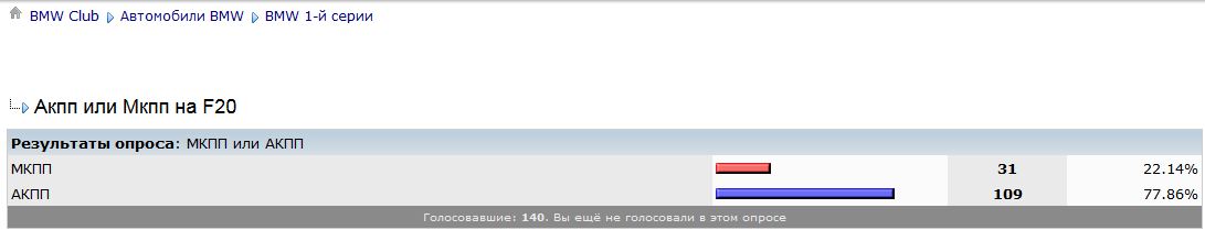 У которых потребность чем-то руку занять Сто раз уже терли. - удобнее, комфортнее, проще ездить. Ездить на механике - это примерно как стирать руками - надежней, экономичней, приемистее, но тем не менее в машинке стирать лучше. чем? От оно как... Расскажите нам, сколько лошадей в механической коробке? 'Резвость' механики проявляется в основном только у бюджетных маломощных авто, типа ВАЗов или КИА-Рио. Тухлый двигатель вкупе с дремучей дешевой АКПП делает езду унылой. Именно поэтому о 'мощной' и правильной 'механике' так любят рассуждать ВАЗоводы. А владельцев тачек со 150+ л\с под капотом наличие АКПП нисколько не парит. Более того, на мощных движках, разницы то и нет. Кстати о резвости механики. WV Golf 1,4 на 'автомате' легко делает 'Приору' на механике у которой 1.6 под капотом. Как же так - механика же резвее.? Ты десять раз сцепление поменяешь, чем АКПП навернется. И что значит 'надежнее'? 150-200 тыс. АКПП ходят без проблем, даже если владелец авто забил на обслуживание. При среднестатистическом годовом пробеге городского авто в 12-15 тыс., тачка с пробегом 150++ тыс. скорее всего будет ведром, у которой помимо коробки будет масса проблем. Чем? Очнись, авто на вариаторе потребляет меньше бензина, чем аналогичное авто на ручке. Плюс в целом расход больше зависит от стиля езды, чем от коробки. И если у маломощных тачек разница еще видна, то у бодрых тачек ее фактически нет. Например бензиновый бумер кушает примерно одинаково, что на механике, что на АКПП. Да и зайди в любой автосалон - много ты там найдешь тачек ценой от 1.2 млн или мощностью от 150 л.с на механике? А тачек от 2-2.5 млн на механике просто нет. Потому что людям нафиг не нужна механика за такие деньги. Подавляющее число людей берет механику только потому, что это дешевле. Вполне объективная и понятная причина. Но не надо лечить про "взрослые водители".... В целом единственное, где механике дает преимущества - бездорожье. Причем бездорожье жесткое, куда на обычной тачке просто не сунешься. ---------- Сообщение добавлено 17.10.2015 00:27 ---------- Ну попробуй на ней каждый день поездить на работу. Проклянешь все на свете. Кстати, поставь туда АКПП и никто разницы в динамике не заметит, особенно на дорогах общего пользования. ---------- Сообщение добавлено 17.10.2015 00:28 ---------- Вариатор тут тебя скорее всего обставит.