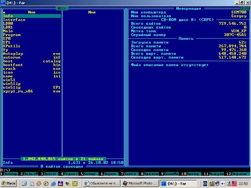 Взял у товарища диск с ХР, а в WinCmd показал что на нем 1Гб в то же время диск 712 Мб скрин прилагается