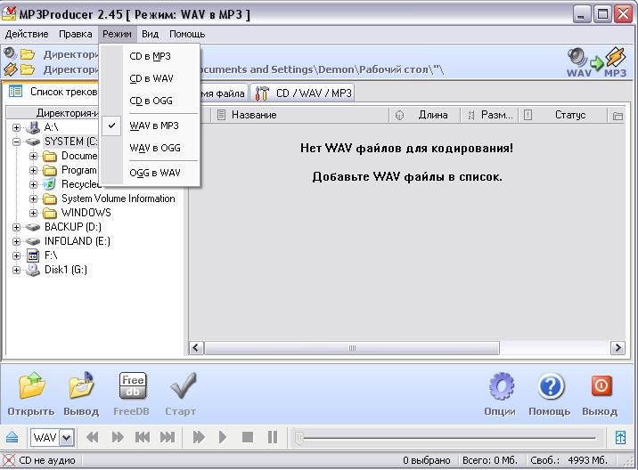Всё понятно. У тебя более старая версия. У меня версия 2.49 от 10.04.06. Скачай: MP3 Producer RUS 2.49 Для русскоязычных пользователей регистрация бесплатна. License Name: free License Code: 04-23413-80907554
