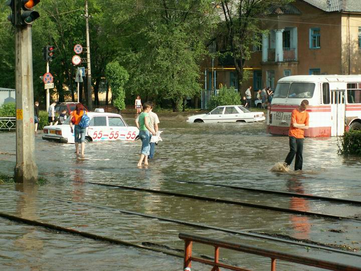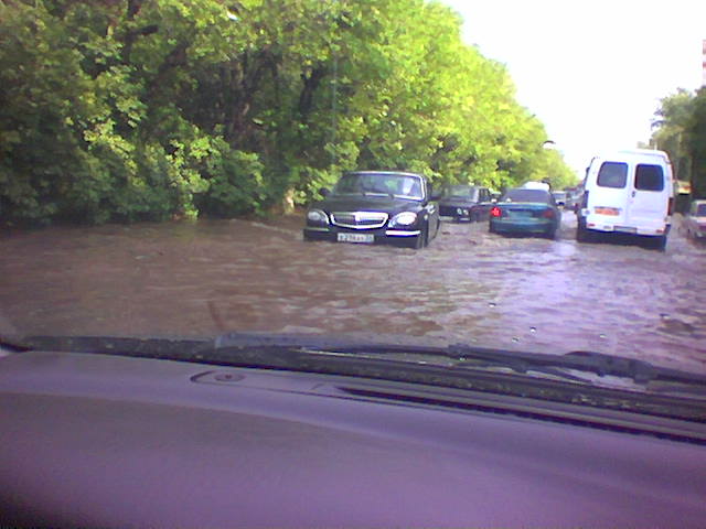 повезло! а мы с подругами вчера прикольно искупались в дзержинском!!! ехали неизвестно сколько до ПХ на такси - все нормально, зато потом из ПХ решили дойти пешком(да там минуты 3 всего...) - насквозь промокли! по теме:я в шоке! вот это вам подвезло! насмотрелась фоток.. у нас конечно мокро, но не так!