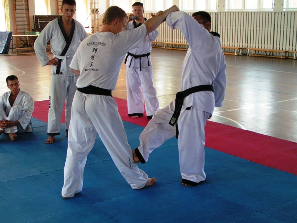 Откатали! Впечатления самые, самые! Ребята - Дмитрий и Вадим, отработали на 100%. Подробности позже... добавлено через 10 часов 19 минут Окончился семинар по ХАПКИДО. Два полных дня по 8 часов, мы отрабатывали падения, болевые, приёмы защиты и нападения характерных этому корейскому стилю боевых искусств. Руководители, инструкторы ХАПКИДО из Санкт-петербургского Центра боевых искусств имени В. Цоя – Вадим Драчёв и Дмитрий Ложенский, оказались не только высококласными специалистами, но и людьми открытыми, готовыми скрупулезно объяснять каждому участнику семинара, техники и секреты мастерства ХАПКИДО. Особенно это касалось техник воздействия на болевые центры – КУПСО, без знаний которых невозможно выполнение боевых приёмов и многое другое. Программа семинара была очень насыщенна, как в информационном, так и в практическом смысле и рассчитана, на 2х летнее обучение. 1. Танджон хоухап – дыхательные упражнения 2. Кибон пхалёлим – техника передвижений 3. Кибон пхальчаги – техника ударов ногами 4. Кибон квонбоп – техника ударов руками 5. Кибон накбоп – техника падений и переворотов 6. Сонмок хосинсуль – техника освобождений от захвата за запястье 7. Пхэги суль – техника уходов от захвата 8. Чиги суль – защита от ударов руками От нашего Центра в семинаре участвовали в основном инструкторы, обладатели чёрного пояса, знакомые с основами ХОСИН СУЛЬ ТКД (боевой раздел таеквон-до), это позволило не задерживаться на таких разделах, как «ударка», да и знание общих принципов болевых воздействий на суставы, а так же культура движений, позволило справляться с программой с положительной оценкой питерских инструкторов. Самое главное, что вынесли для себя, за эти два интереснейших дня, это принципы болевых воздействий на суставы, их взаимосвязь с искусством КУПСО, также наши знания дополнились новыми эффективными техниками освобождения от захватов и защиты от ударов. Семинар закончился на берегу р.Волга, фуршетом в честь гостей, организованный инструкторами Волгоградского Центра «Спорт-ТЭК». Так же в семинаре участвовали ученики школы ХАПКИДО из Красноармейского района, под руководством Евгения Лушина и представитель секции рукопашного боя, тренер Владимир Шипулин. К большому нашему сожалению, из-за дорожной аварии, на семинар не прибыл основатель волгоградского таеквон-до – Вячеслав Скотников с сыном. Хотелось бы выразить искреннюю благодарность инструкторам ХАПКИДО – Драчёву Вадиму и Ложенскому Дмитрию, а так же старшему преподавателю кафедры физической культуры Волгоградской академии госслужбы - Шипулину Владимиру, за помощь в организации прекрасного спортивного комплекса ВАГСа, в котором мы так плодотворно отработали на семинаре. Выражаем надежду, что подобные семинары по ХАПКИДО, станут традиционными на волгоградской земле! Участники семинара «Спорт-ТЭК» 1. Новомлинов Олег 2. Крикун Анатолий 3. Зюзин Василий 4. Камнев Роман 5. Аршиков Михаил 6. Власова Светлана 7. Тен Ирина