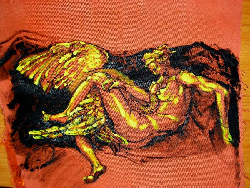 Да это делается акриловыми красками, которые тоже стоят денег,работу выполняет опытный художник,поэтому 500 р. за А4 недорого....