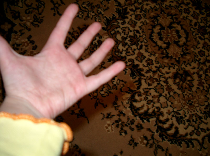 Руку на фоне ковра - в ч/б и пожёстче контрастирование - получится очень концептуально, вполне в духе... :о))
